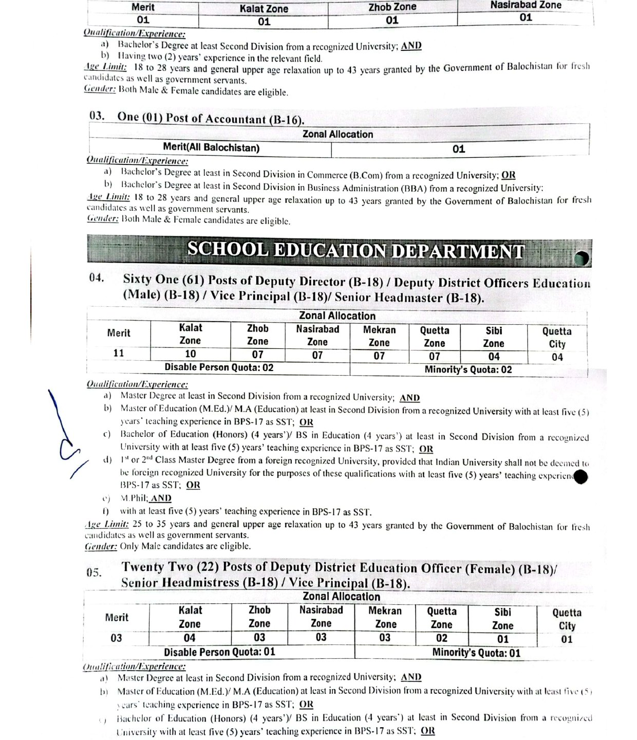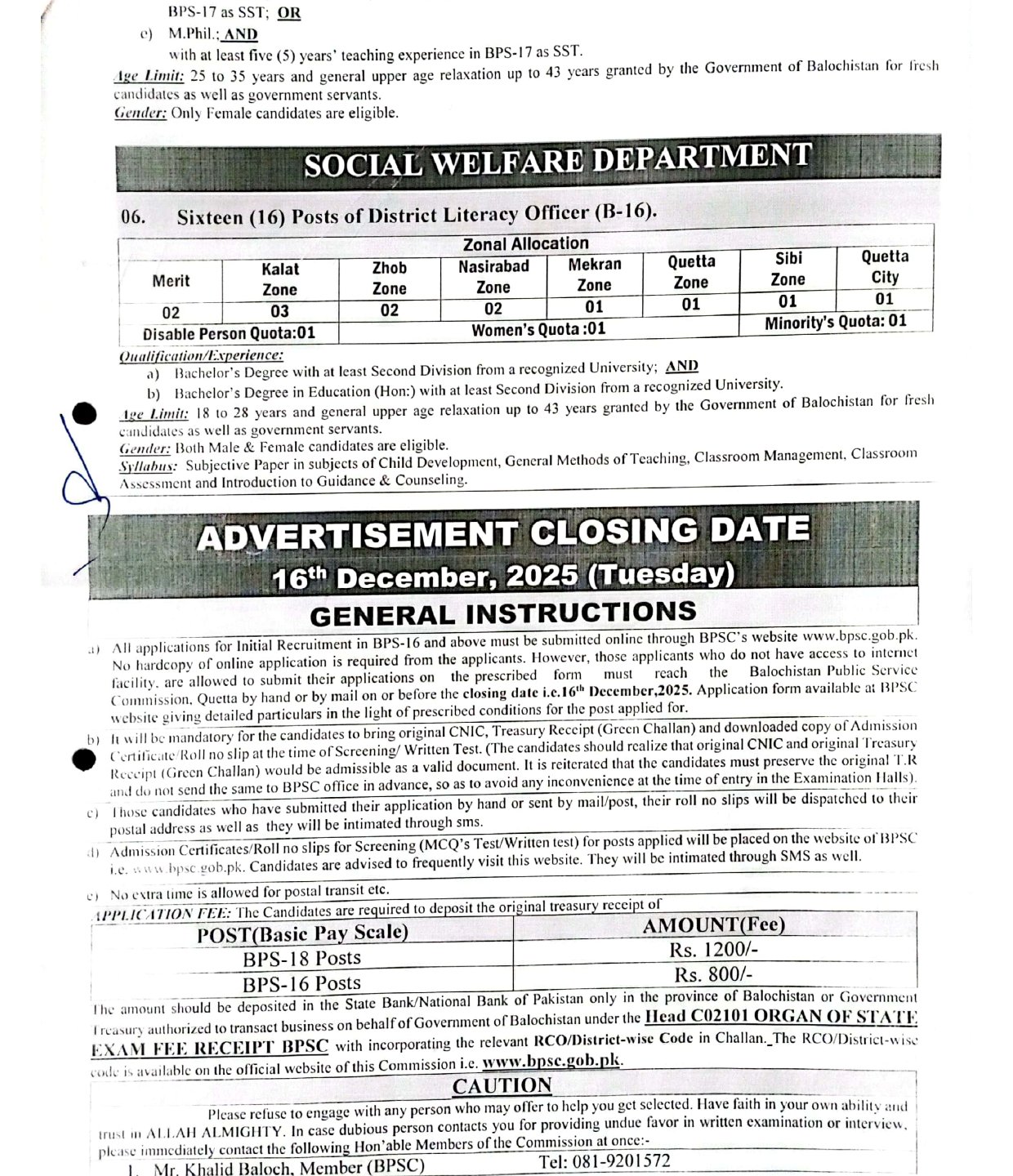 Balochistan Public Service Commission (BPSC) has announced multiple vacancies in different Government Departments of Balochistan including Health, Education, and Social Welfare Departments.
