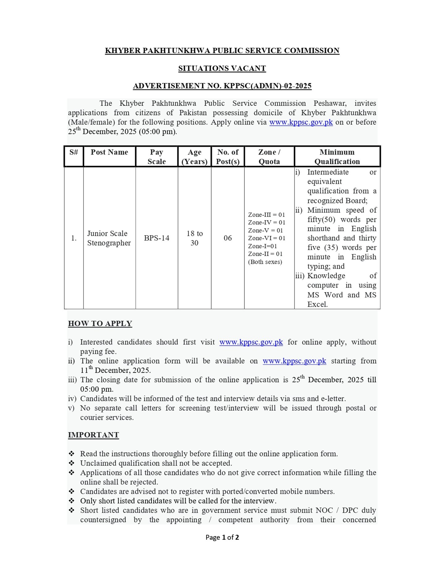 khyber pakhtunkhwa public service commission jobs, kppsc jobs 2025, latest kppsc jobs peshawar, current kppsc job opportunities, fresh kppsc vacancies 2025, kppsc advertisement admin 02 2025, kppsc situations vacant, junior scale stenographer jobs, stenographer jobs kpk, bps 14 jobs kpk, government stenographer jobs pakistan, public sector jobs khyber pakhtunkhwa, kpk government jobs 2025, intermediate pass government jobs, typing jobs government sector, shorthand jobs pakistan, clerical jobs kpk, office staff jobs kpk government, male female jobs kppsc, kppsc zonal quota jobs, merit based government jobs kpk, kppsc online apply jobs, apply online kppsc gov pk, kppsc latest advertisement december 2025, jobs published in kppsc advertisement, provincial government jobs kpk, kppsc recruitment 2025, latest government jobs peshawar, junior clerk stenographer jobs kpk, public service commission kpk careers, government jobs announced in daily newspaper, official kppsc job notification
